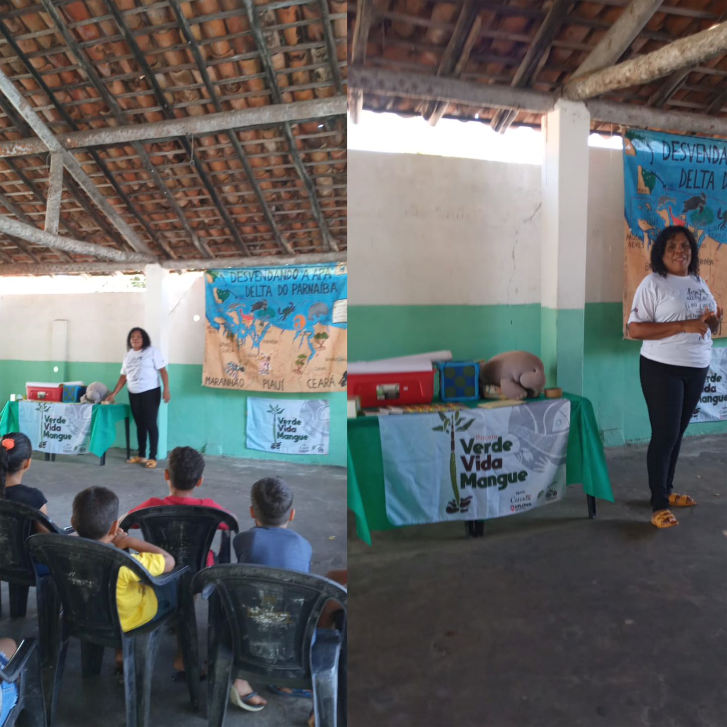 No último dia 28, o projeto Verde Vida Mangue realizou atividade com crianças na comunidade de Canárias – MA. Atividade chamada de “Meu território chamado Resex Delta do Parnaíba”, explorou um painel que contém as espécies presentes no Delta, como tartarugas marinhas, cavalo-marinho e peixe-boi, e o peixe mero que está proibido de ser pescado, sendo que esses dois últimos necessitam dos mangues para se reproduzirem.